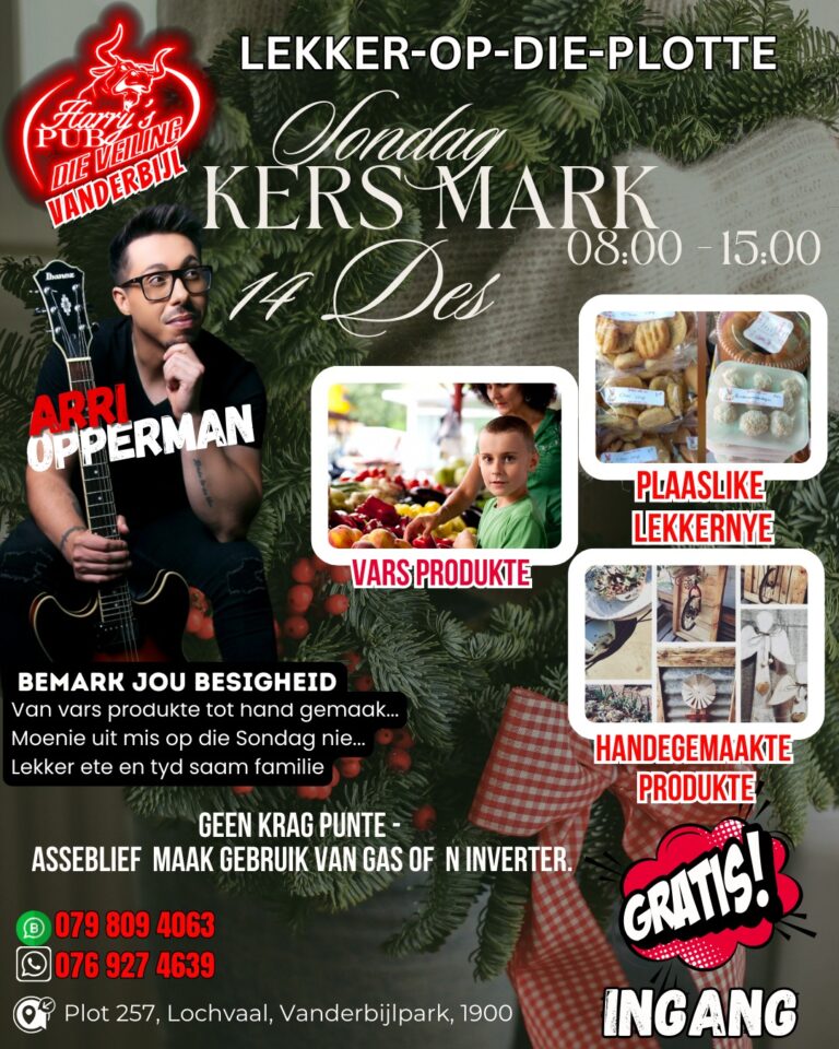 Kom kuier saam met ons by Die Veiling Vanderbijl vir ’n heerlike Sondag Kersmark!